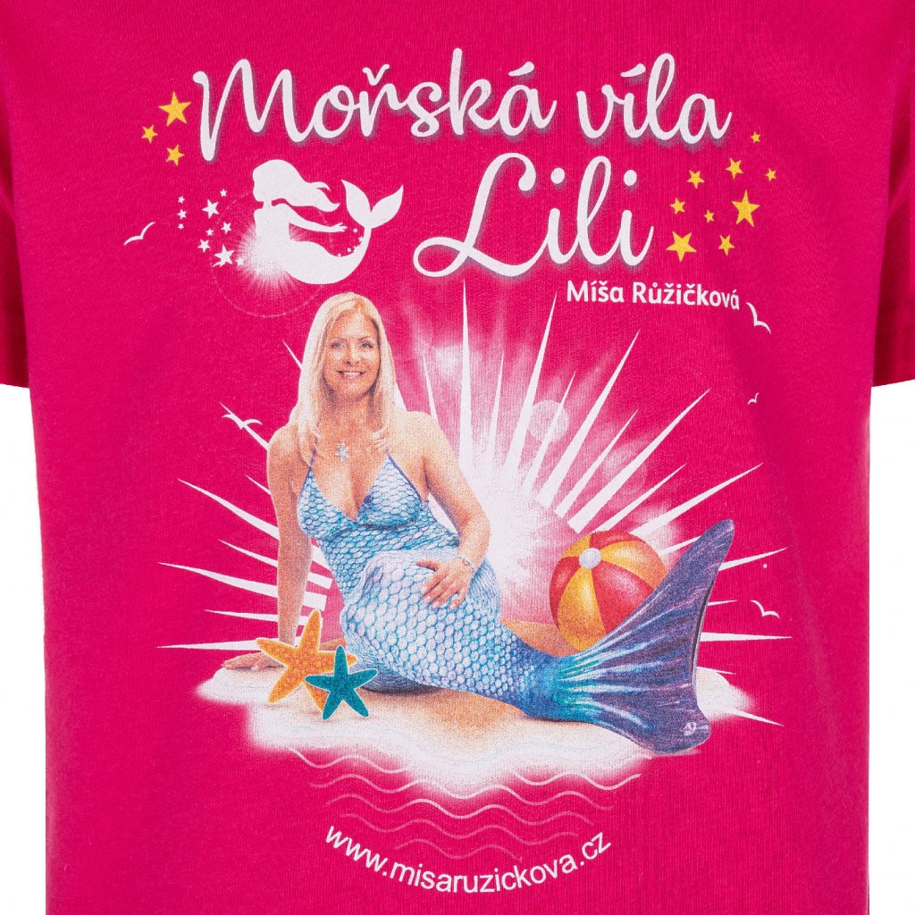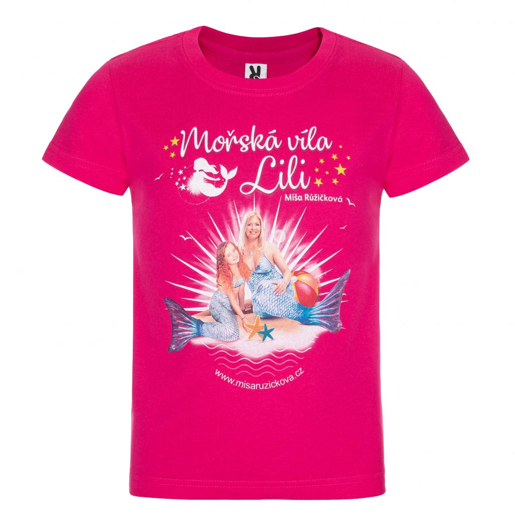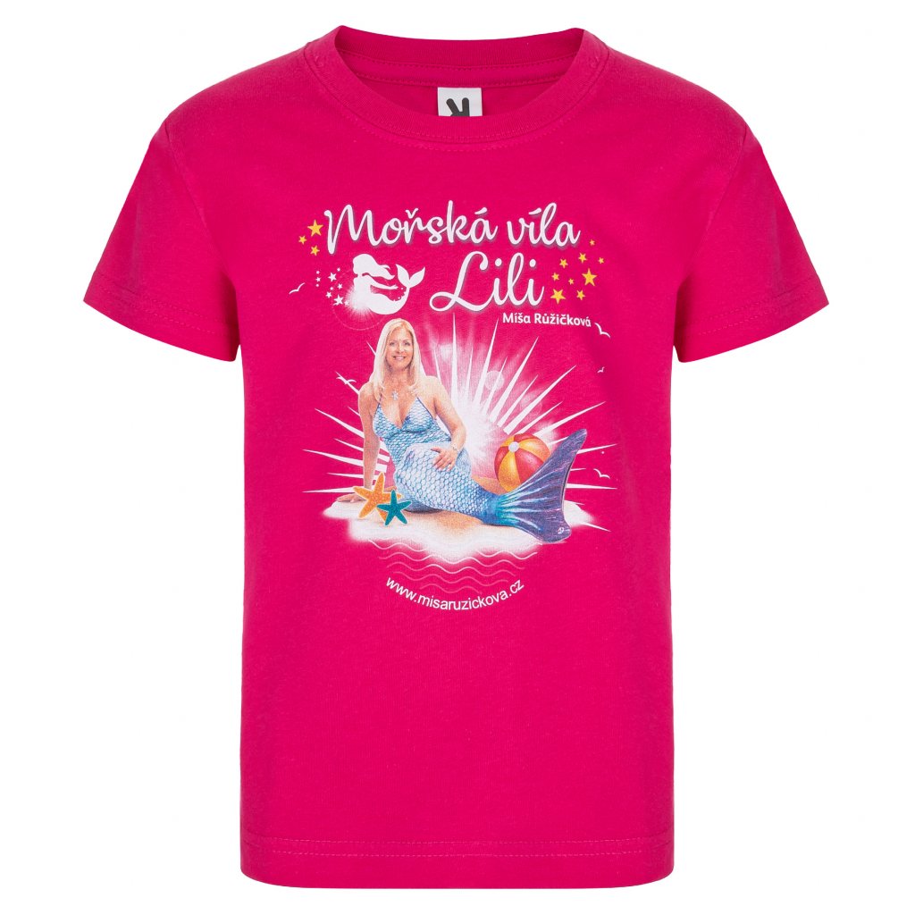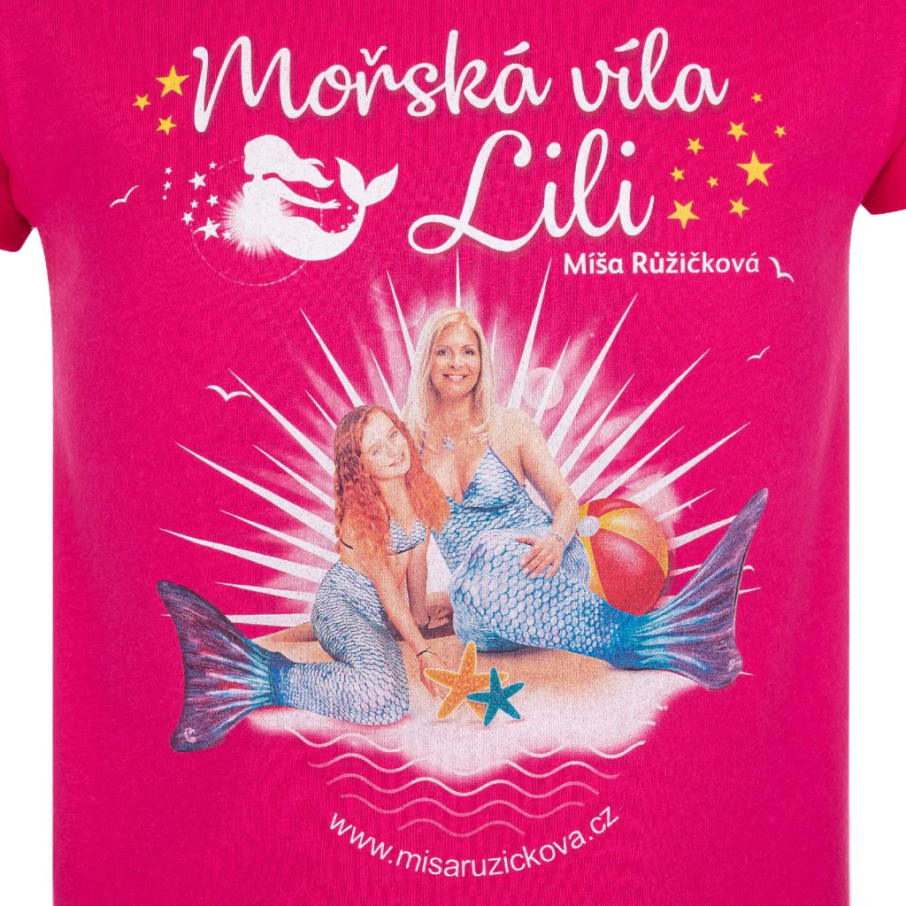 Tričko pro děti Míša Růžičková v kostýmu mořské víly. Na výběr máte ze dvou variant ve dvou barvách - samotná Míša nebo Míša s Luckou Habadovou.